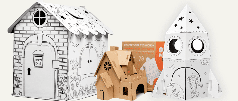 Картонні будиночки для дітей – це не лише іграшки, а цілі світи, які заохочують творчість та розвивають важливі навички. З використанням найкращого якісного картону ми створюємо конструкції, що дозволяють дітям втілювати свої ідеї та фантазії. Кожен будиночок – це можливість для малюка вибудувати власний мрійливий світ, розвиваючи при цьому уяву та творчість.